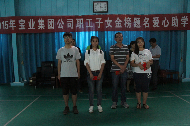 2015年8月27日下午,寶業(yè)(集團)公司組織開展了2015年“愛心助學(xué)”活動,集團公司副總經(jīng)理譚照明先生、代均康先生、財務(wù)總監(jiān)黃曉琴女士和房地產(chǎn)總經(jīng)理汪軍先生出席了本次活動。根據(jù)公司“愛心助學(xué)”獎勵制度對15名考入本科院校的職工子女進行了獎勵,并將助學(xué)獎金發(fā)到了這15名的職工子女手中。