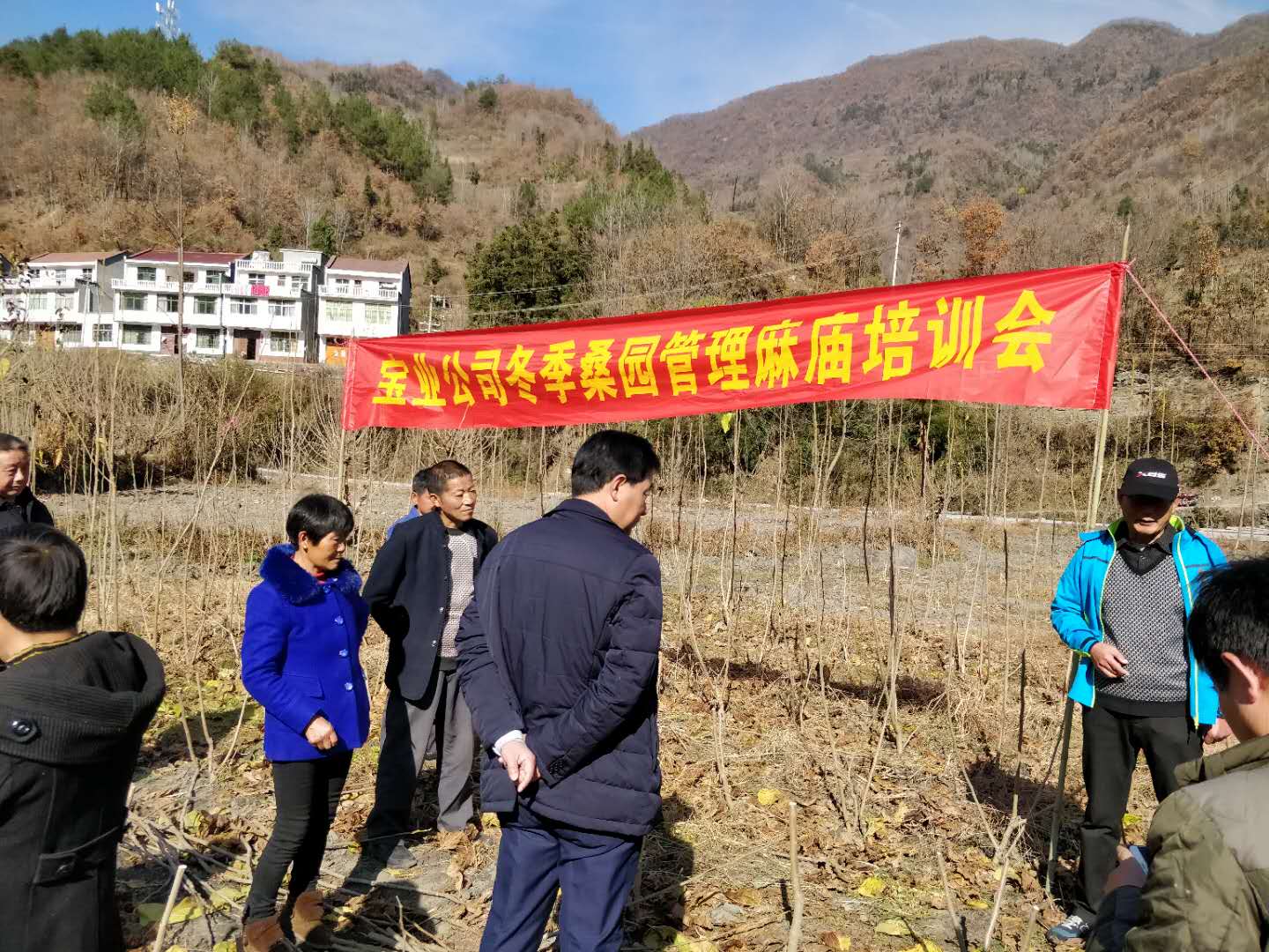 14. 2018年11月26日(周一),陳正余、譚照明、代均康、蘇鳳剛、馬釗、彭福等,到麻廟村進(jìn)行新栽桑樹樹型養(yǎng)成和冬季桑園管理技術(shù)培訓(xùn),麻廟村“兩委”班子成員、合作社養(yǎng)蠶大戶共23人參加了培訓(xùn)。陳正余現(xiàn)場手把手的給大家示范講解,使參培人員基本掌握了相關(guān)的技術(shù)要求。同時,公司給村上送去了價值5200余元的2000kg生石灰、100kg鹽、50把桑剪。